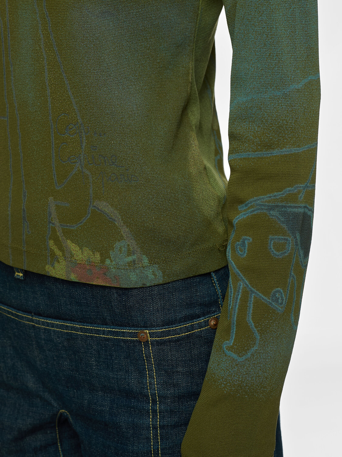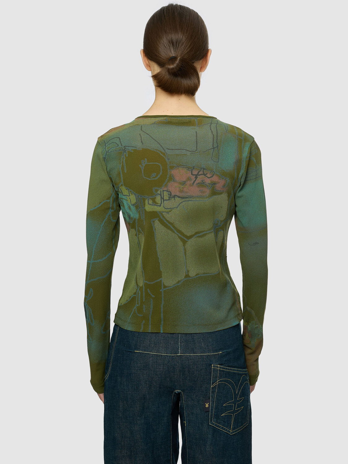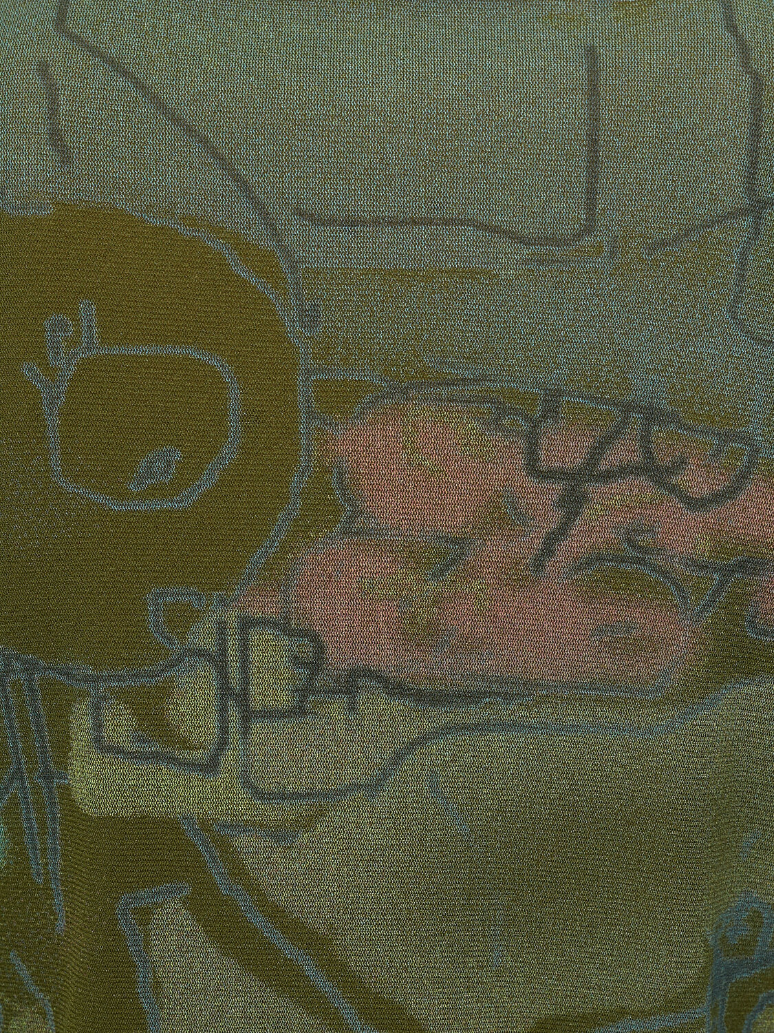 Cop Copine green mesh long sleeve top with a graphic print.