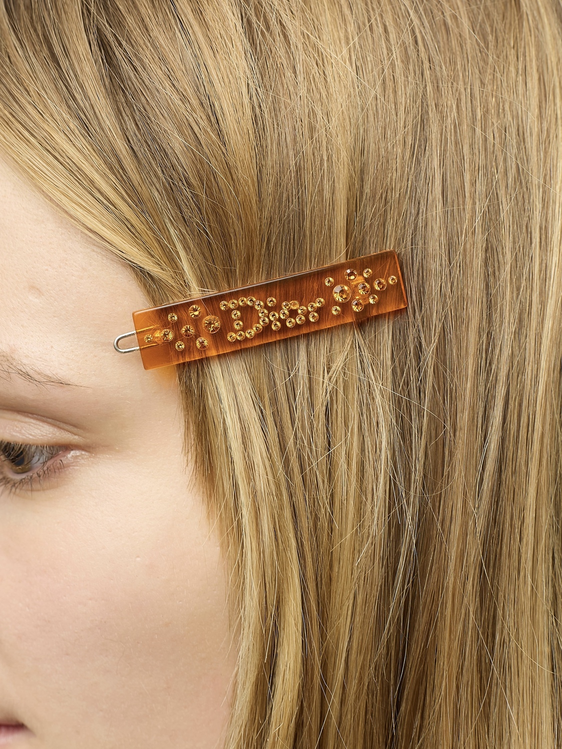 Christian Dior orange transparent perspex hair clip with sparkly orange crystal rhinestone logo.