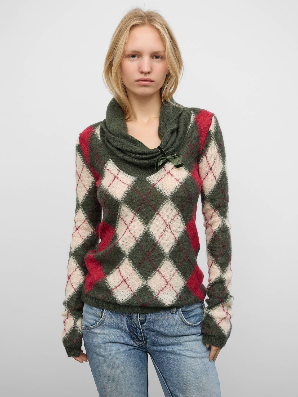Fornarina multicolour argyle fine-knit turtleneck jumper.