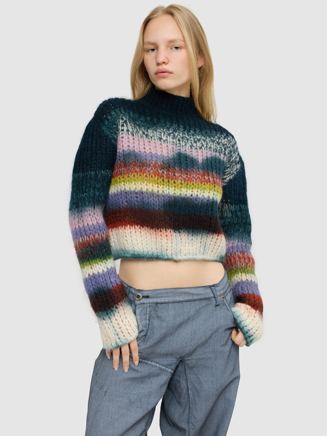 Gazebo multicoloured chunky knit mock neck jumper.