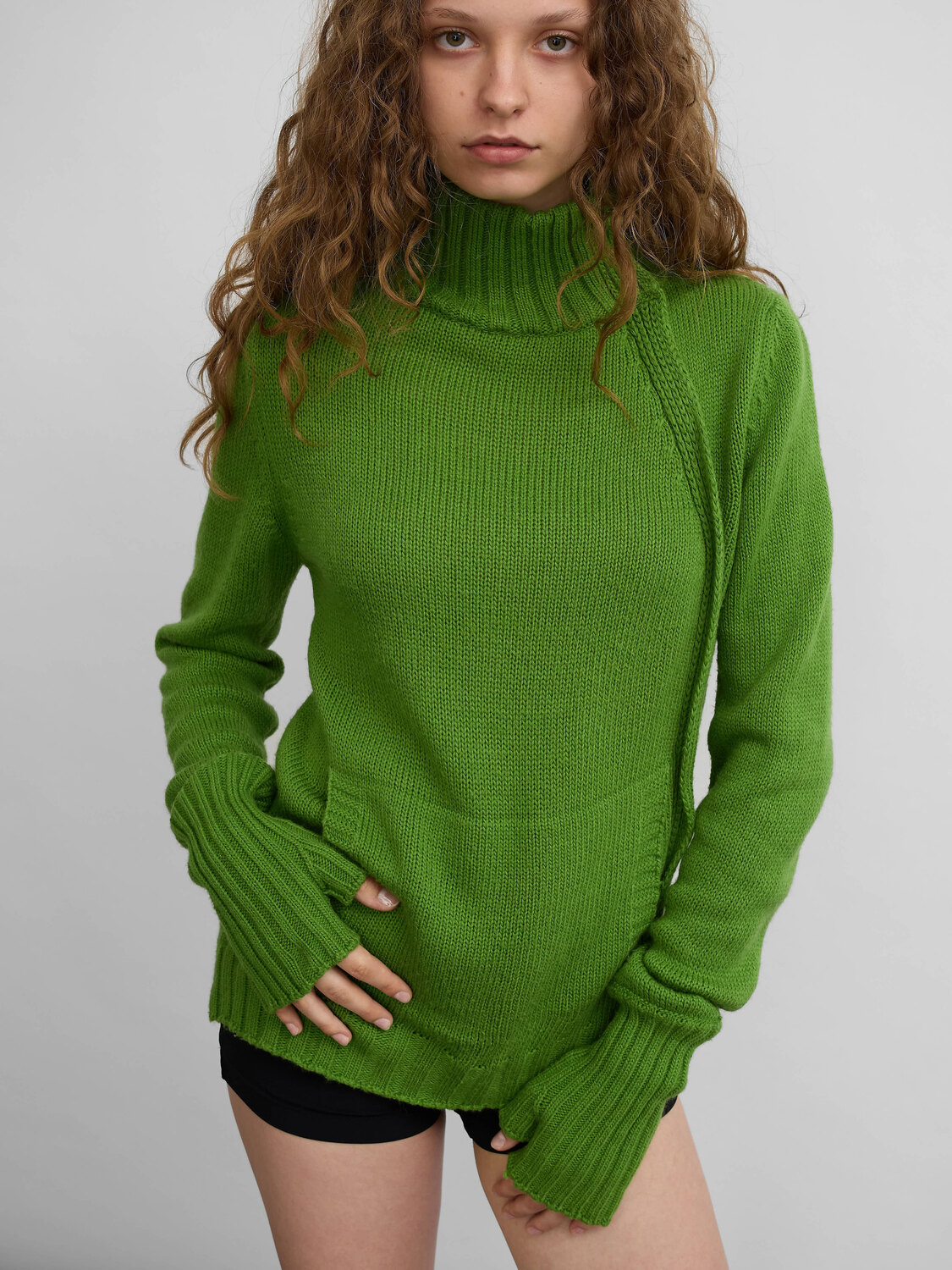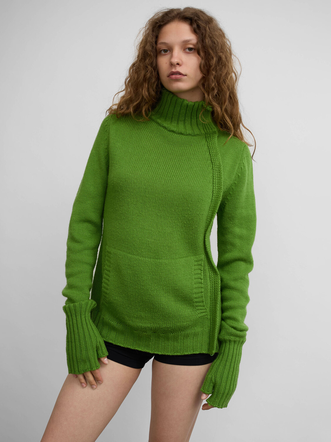 Killah green knitted zip-up jumper with a kangaroo pocket and finger holes.