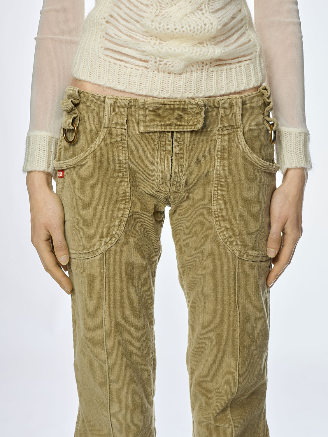 Miss Sixty olive green corduroy capri trousers with adjustable hems.