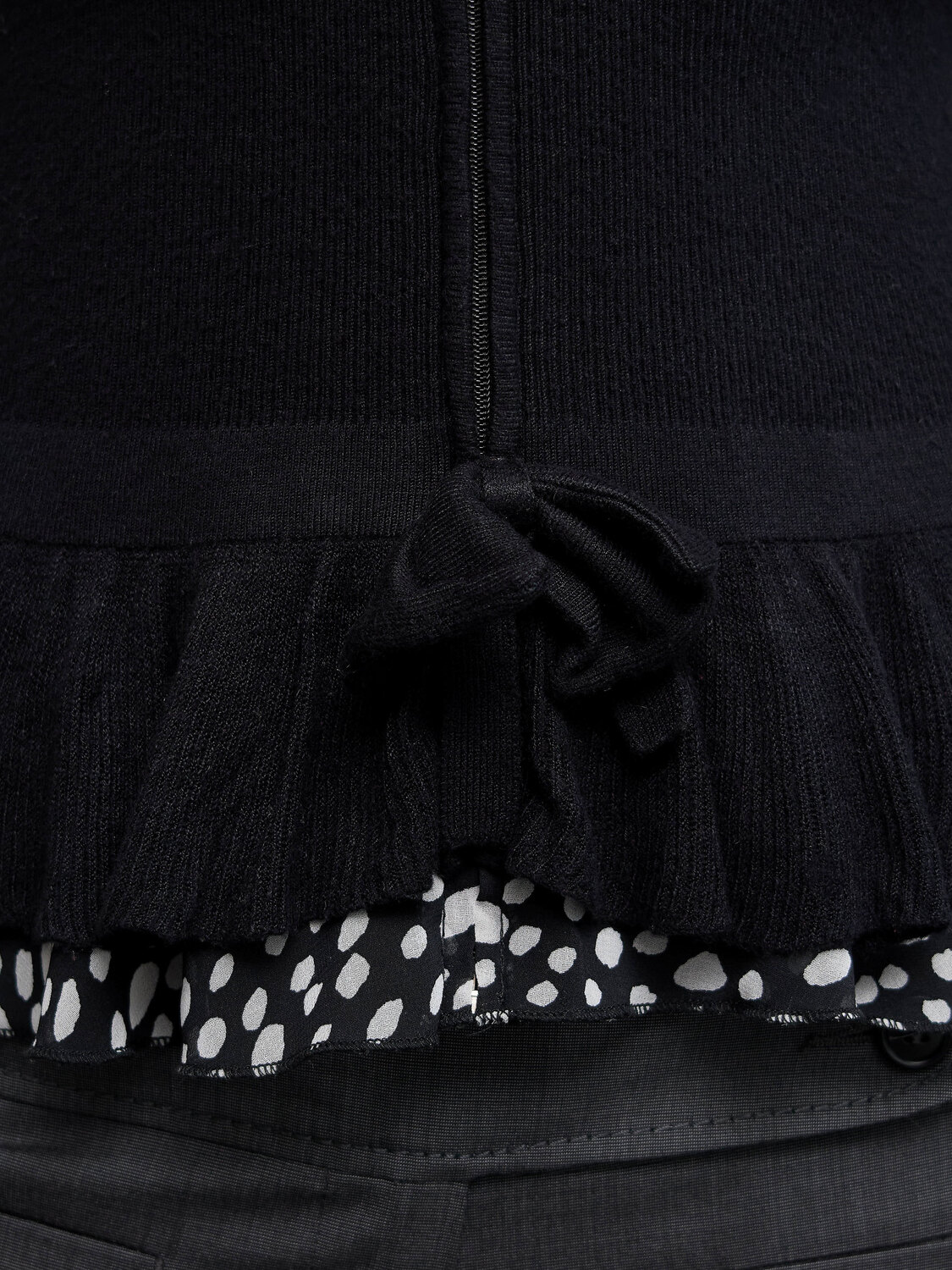 Morgan De Toi black fine knit zipped jumper with a polka dot chiffon trim and ruffled cuffs.