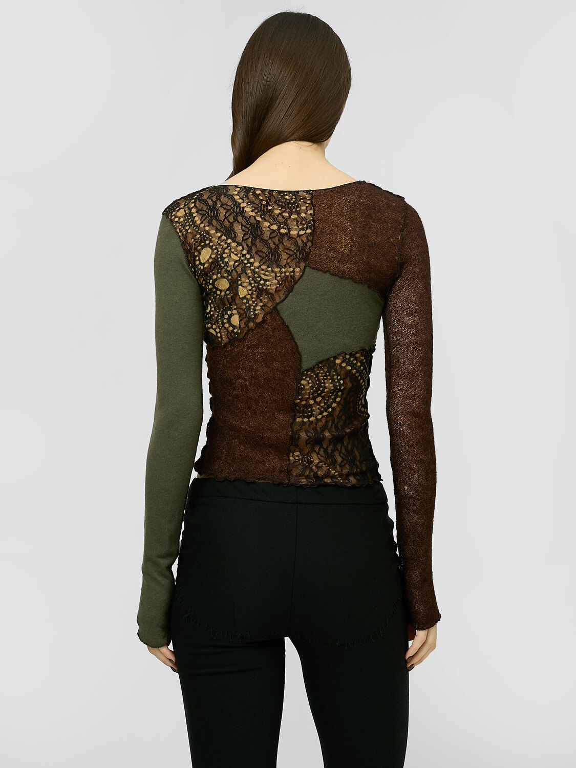 Plein Sud Jeans multicolour patchwork top. Beige mesh lining.