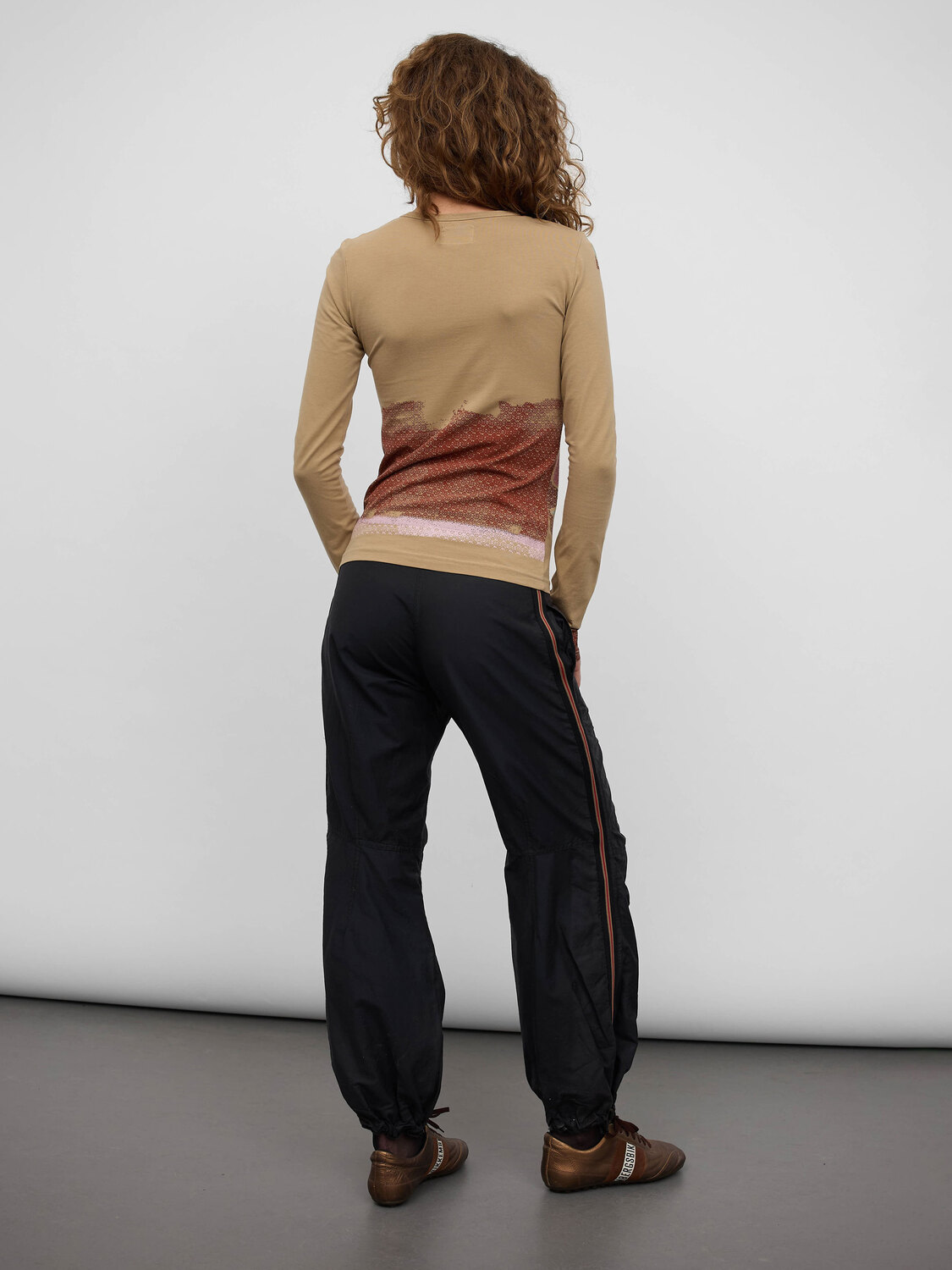 Michiko Koshino long-sleeve top with multicolor graphic motif print at front, back and cuffs.
