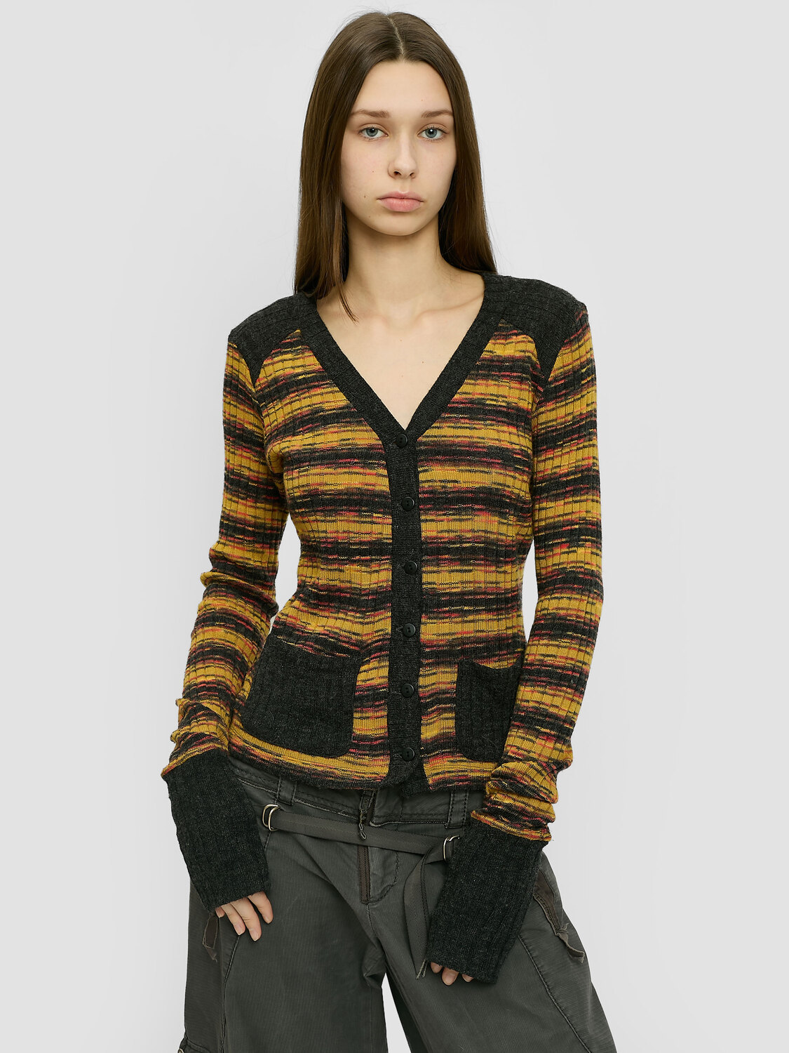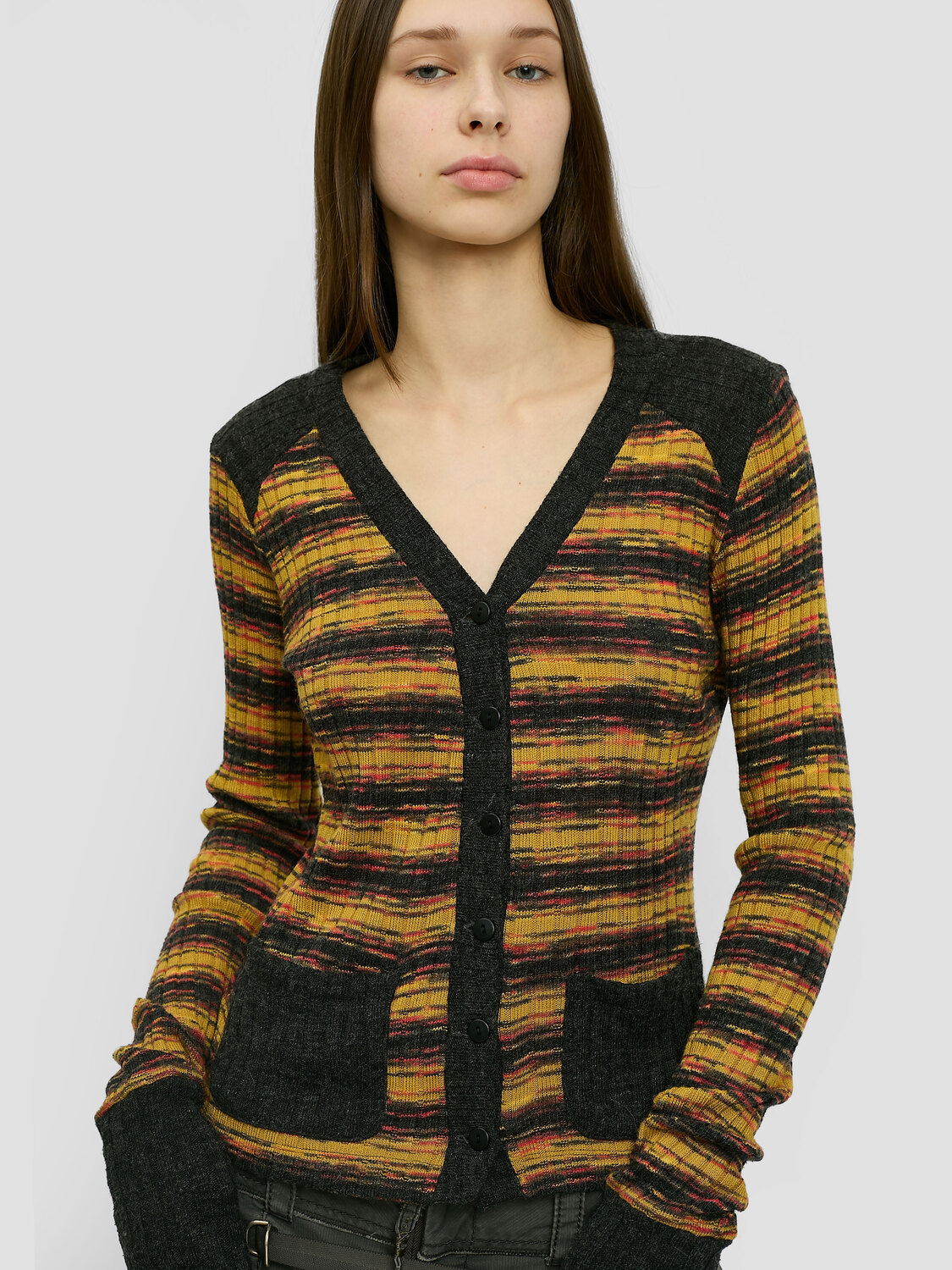 Plein Sud multicolour striped knitted button-up cardigan with pockets.