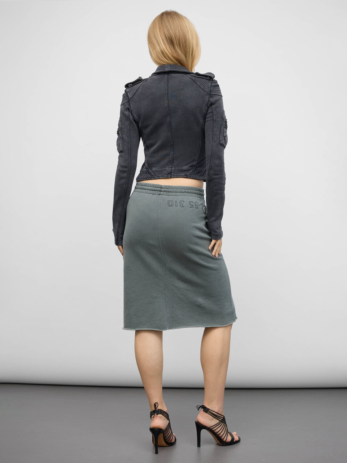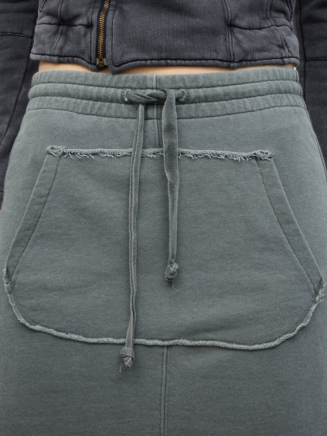 Diesel slate green distressed tracksuit-style midi skirt.