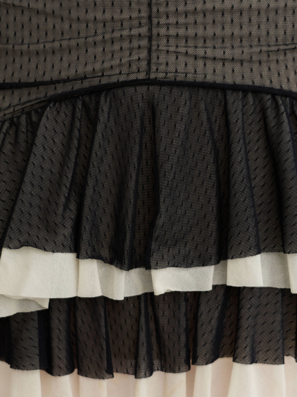 Morgan De Toi black and white layered stretchy mesh mini skirt.