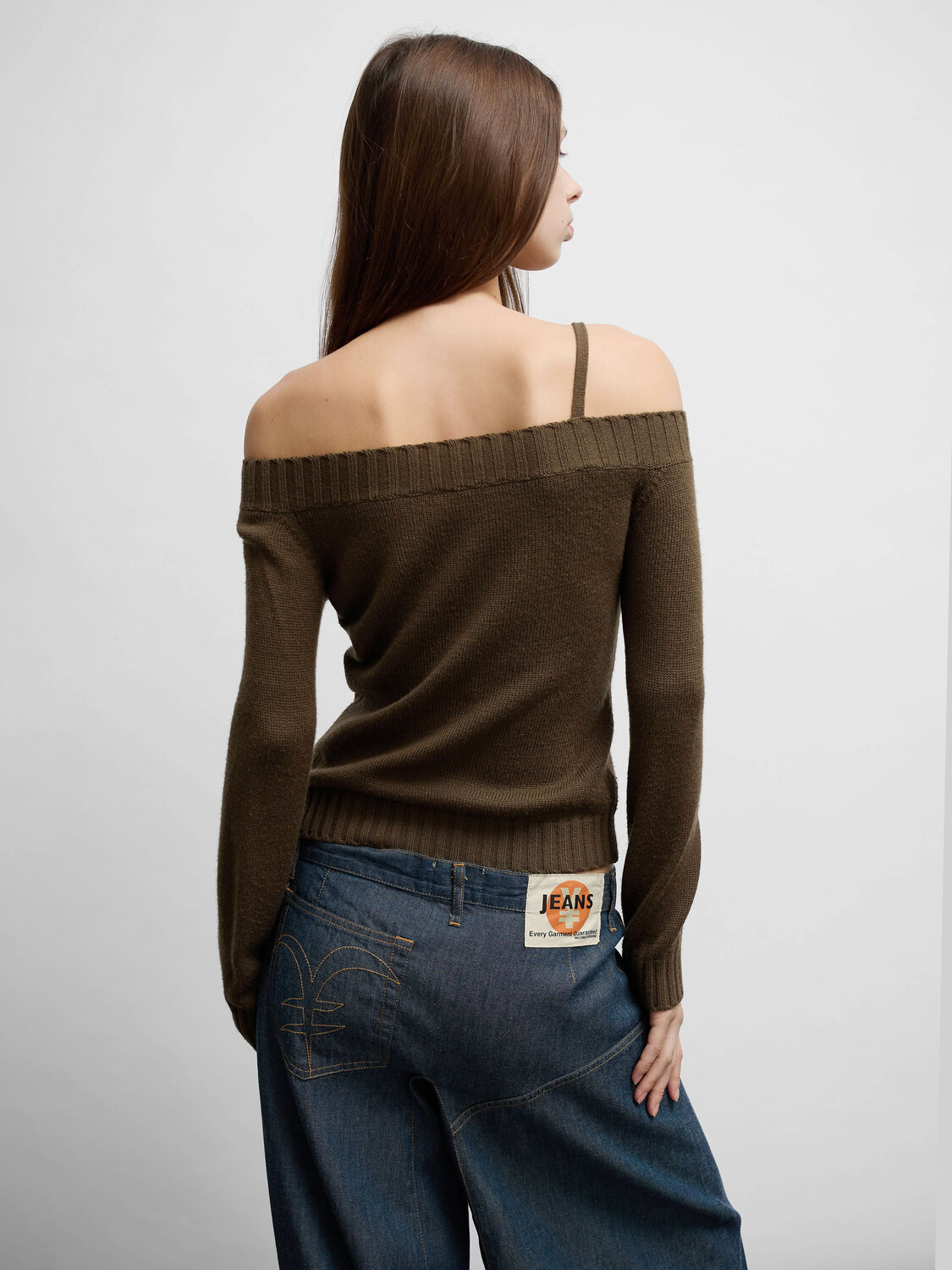 C’N’C Costume National brown cold shoulder jumper with decorative toggle closure details.