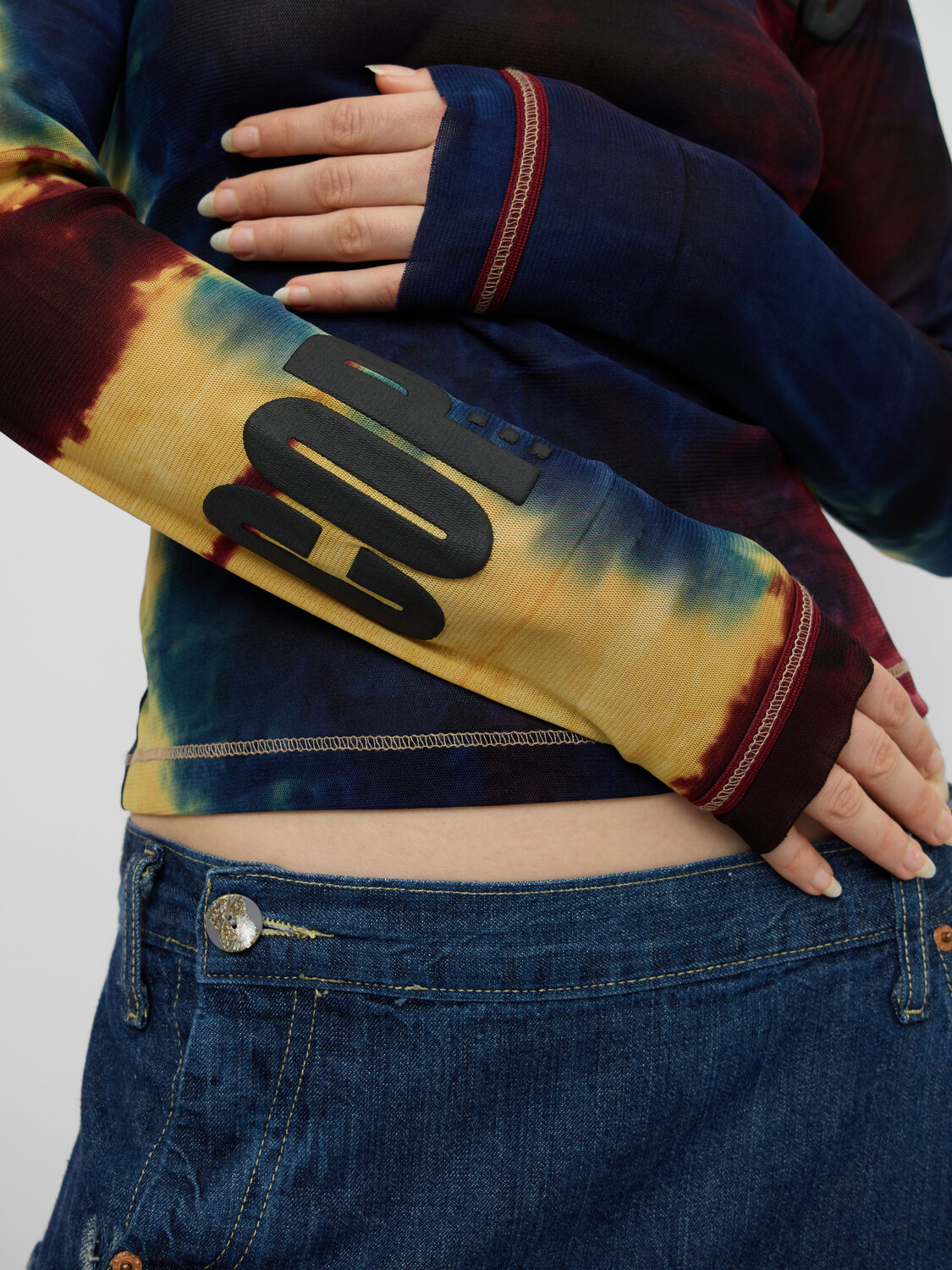 Cop Copine multicolour tie dye mesh top.