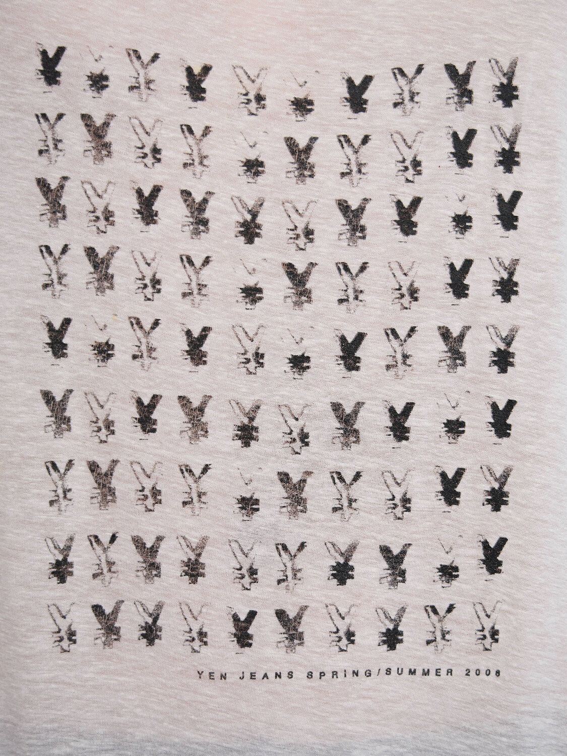 Michiko Koshino white racerback mini dress with Yen print and rib-knit trim. Yen Jeans Spring / Summer 2008 collection.