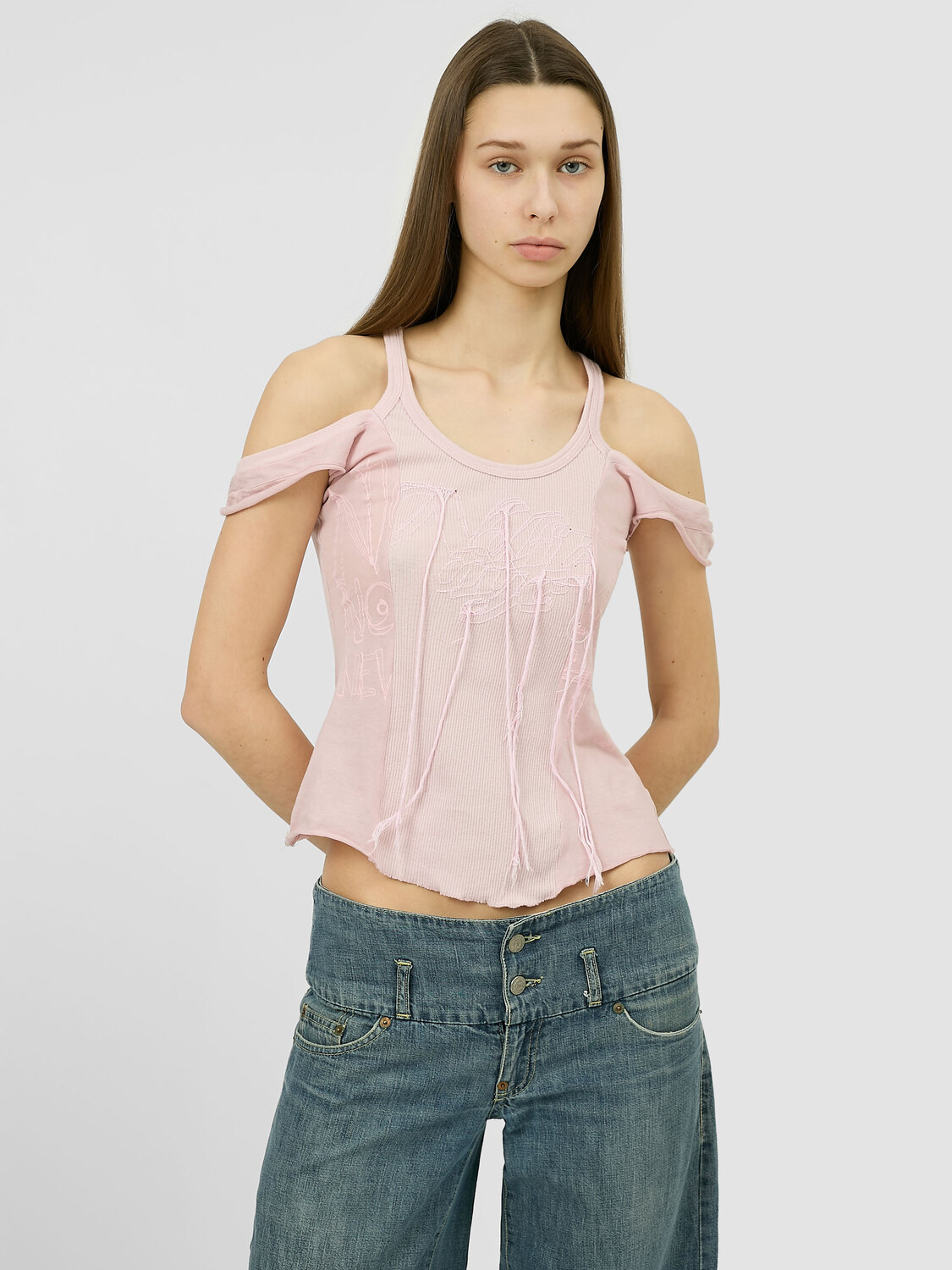 Nolita pink light cotton deconstructed tank top with a logo print and embroidery at the front.