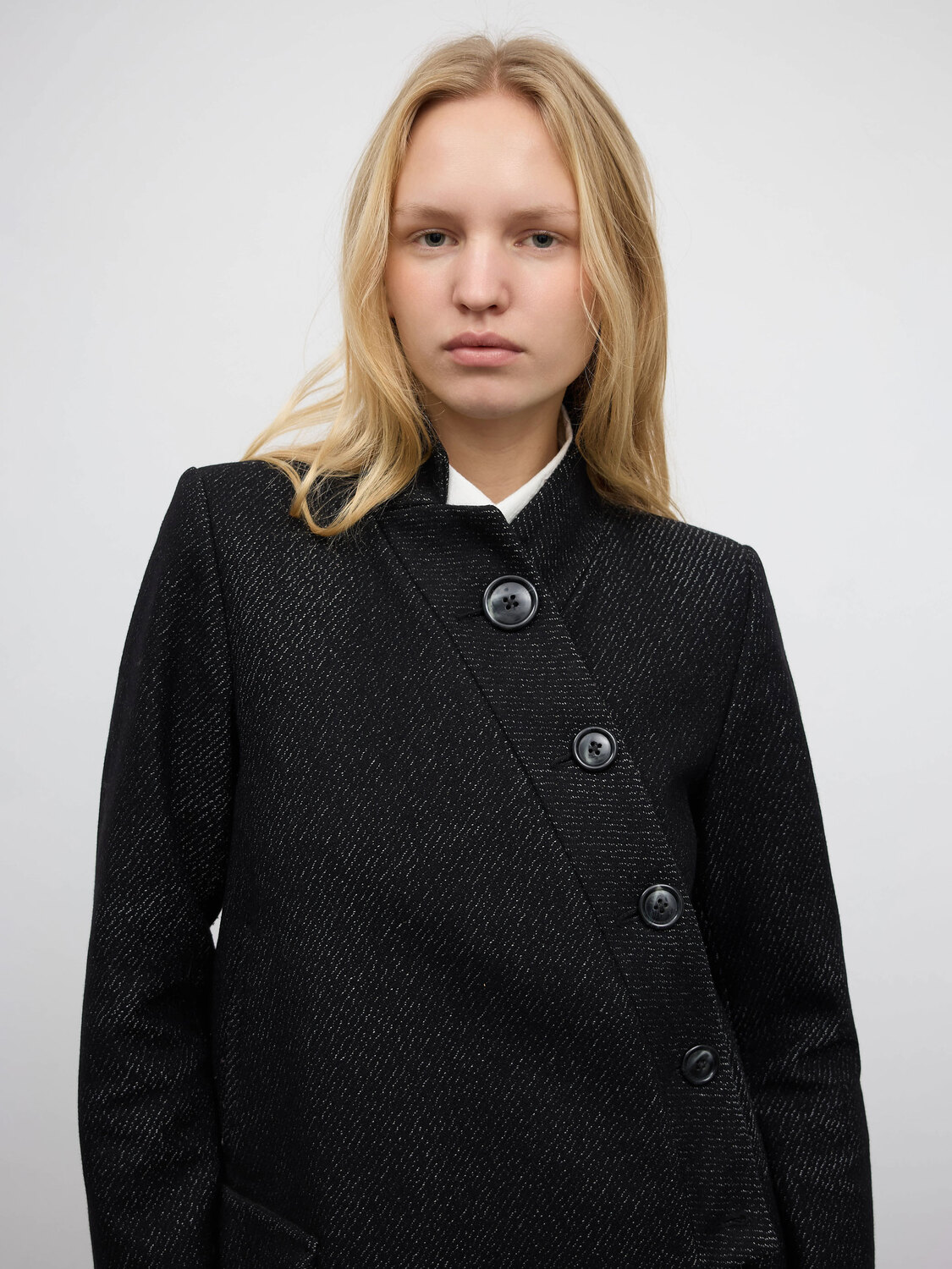 Material: 77% Virgin Wool 19% Polyamide 4% Polyester; lining for body 100% Polyester; lining for sleeves 57% Acetate 43% Polyamide.