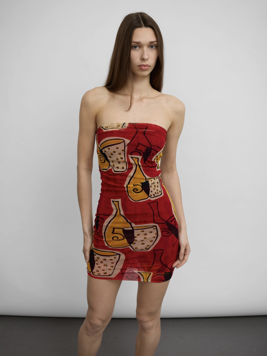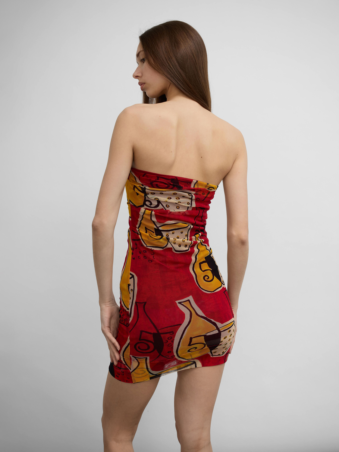 Plein Sud Jeans multicolour mesh mini dress with draped details and a graphic print.