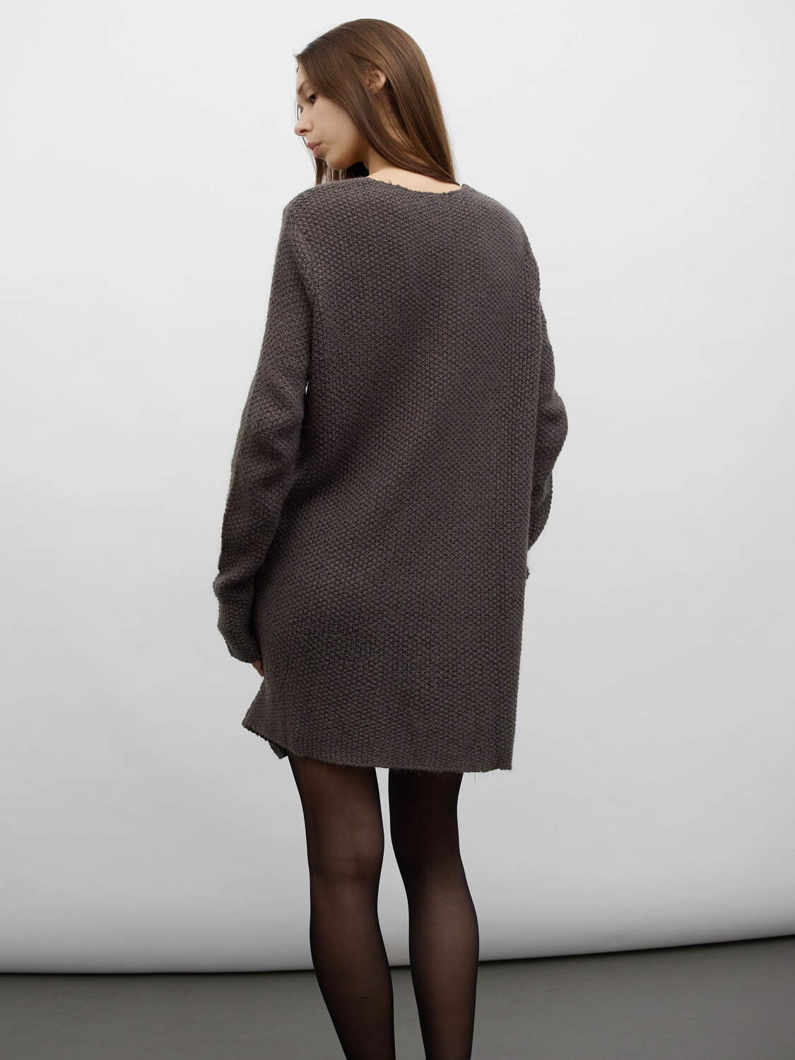 Gsus Industries grey knitted long jumper. Deep v-neck collar.