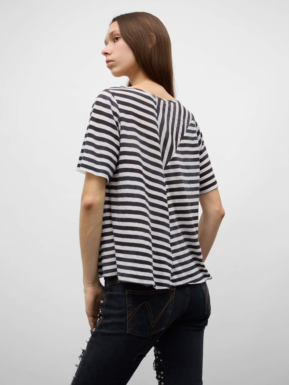 Acne grey and white striped deconstructed T-shirt.
