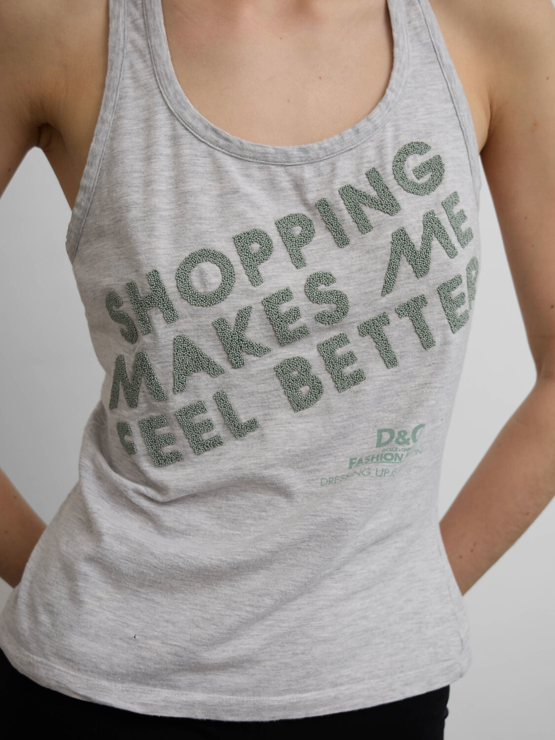 Dolce & Gabbana grey tank top with a beaded slogan print.