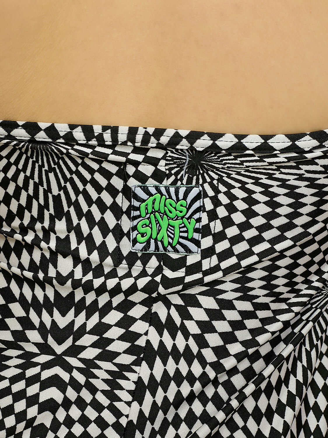 Miss Sixty black and white stretchy tunic-style halter dress with a moiré effect print and an open back.