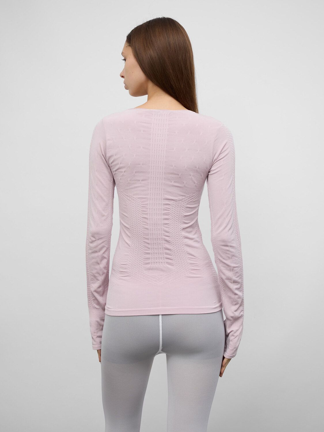 Marithé+François Girbaud light pink stretchy longsleeve top. Gathered and ribbed details all over.