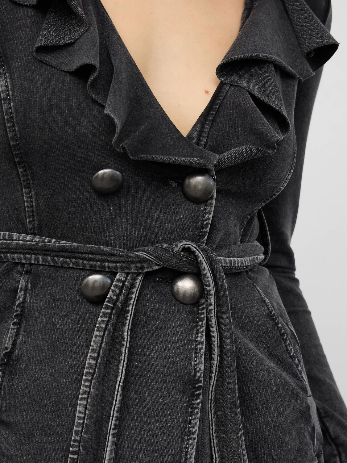 Fornarina dark grey acid wash blaze-style jacket with an integrated belt.