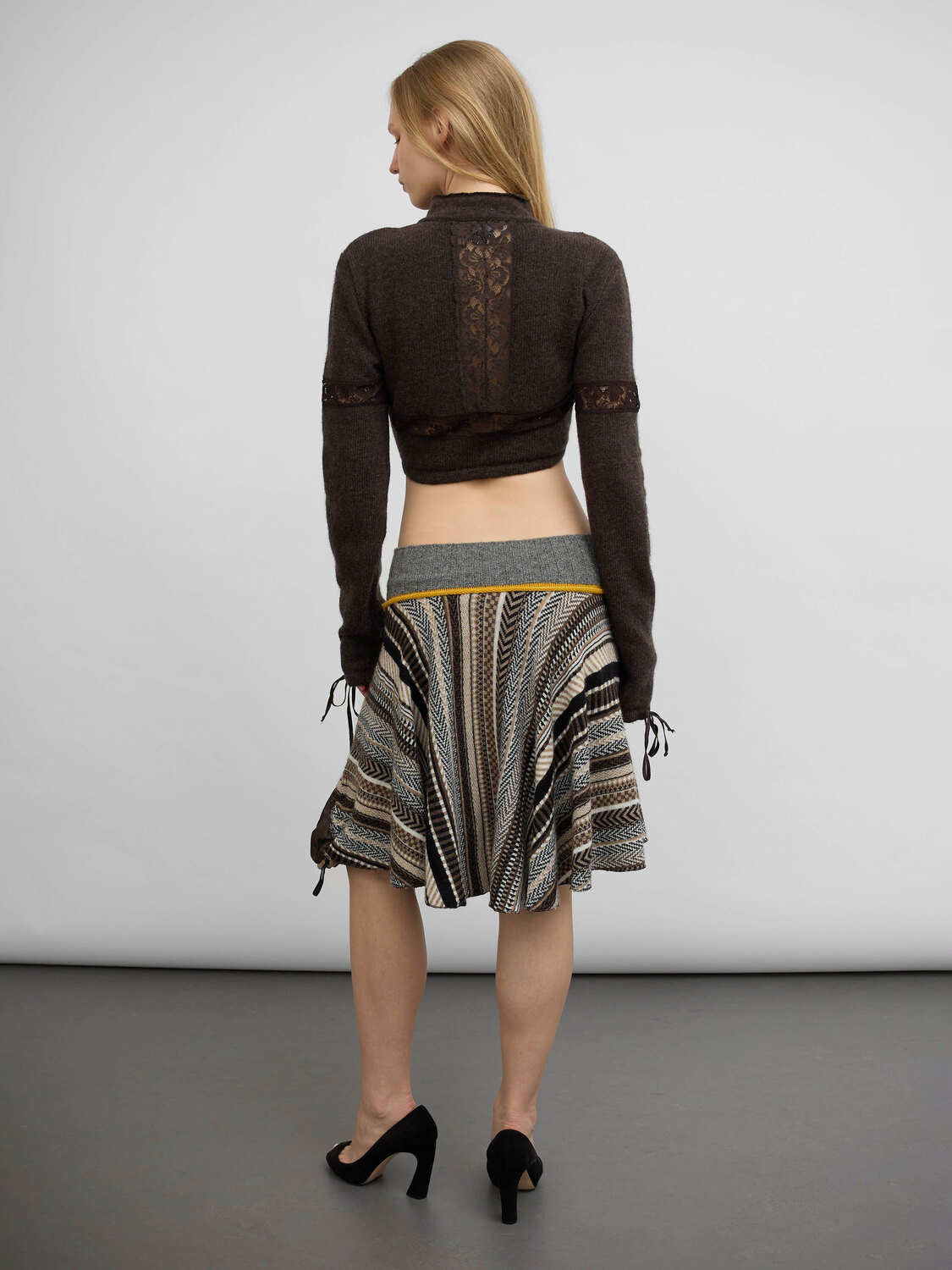 Pianurastudio brown, beige and white knitted deconstructed bubble midi skirt. Ties at the hem for a gathered effect.