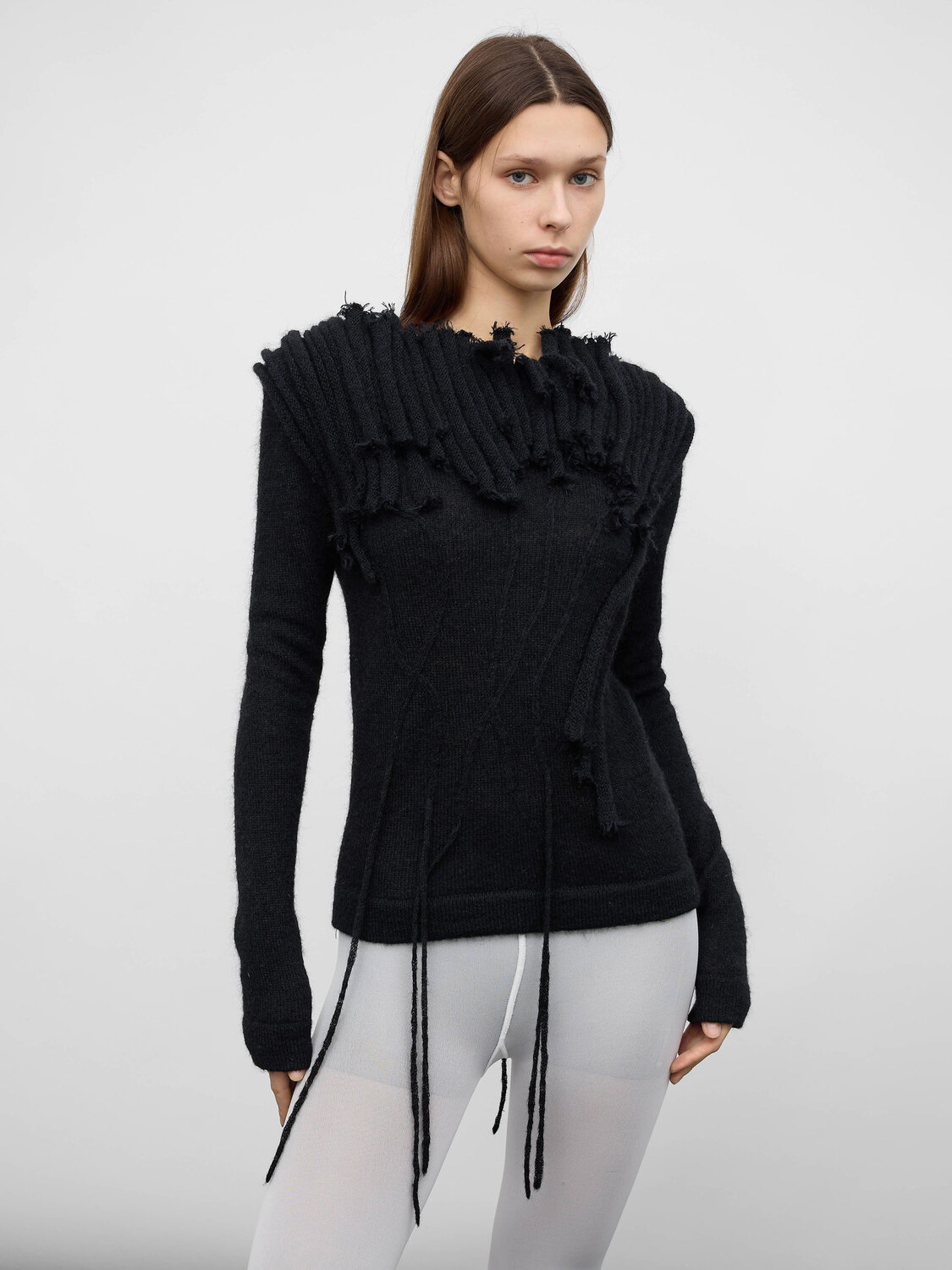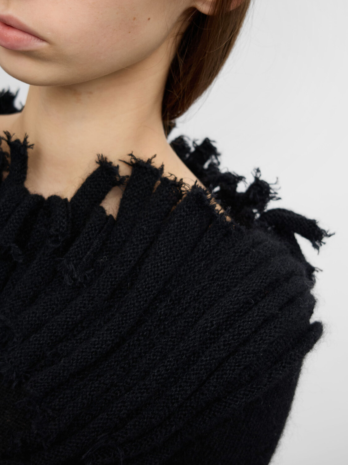 Plein Sud Jeans black mohair knitted boat-neck jumper with fringe details.