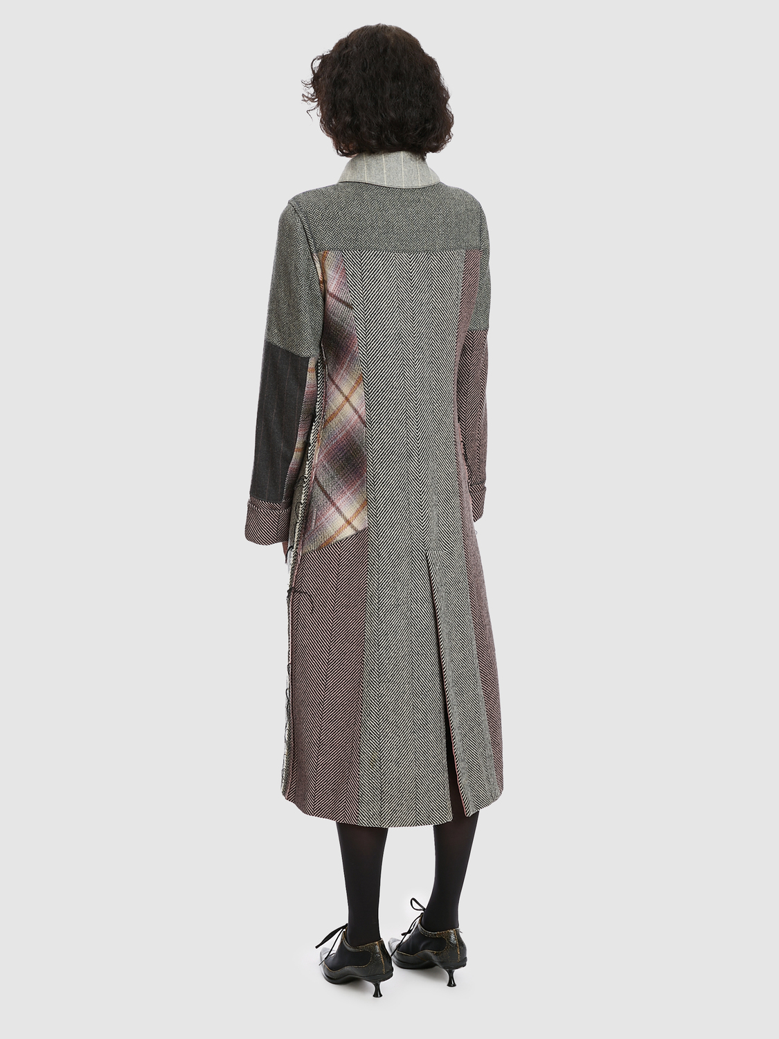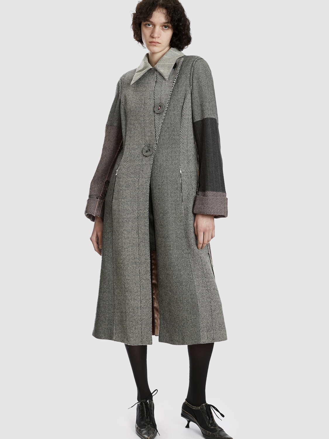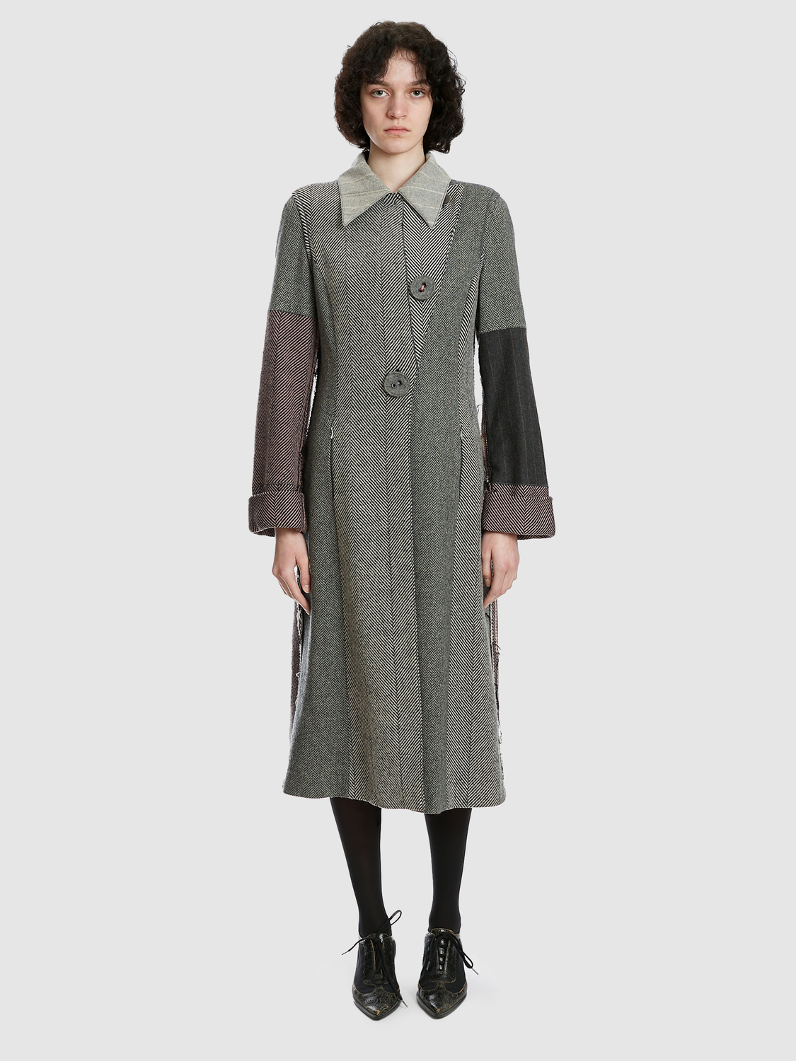 Miss Sixty grey and pink deconstructed wool coat with button closure and zipper side pockets.