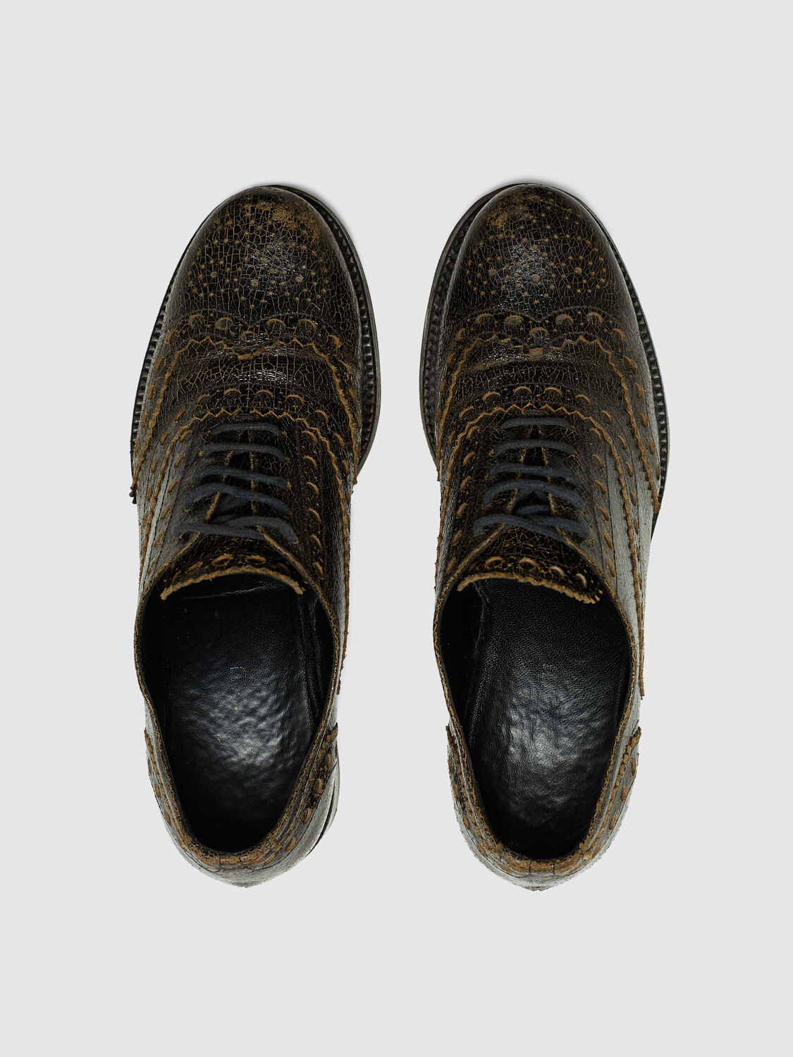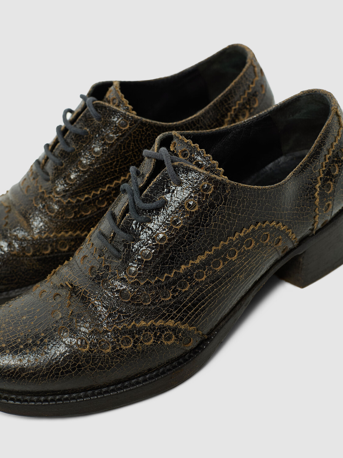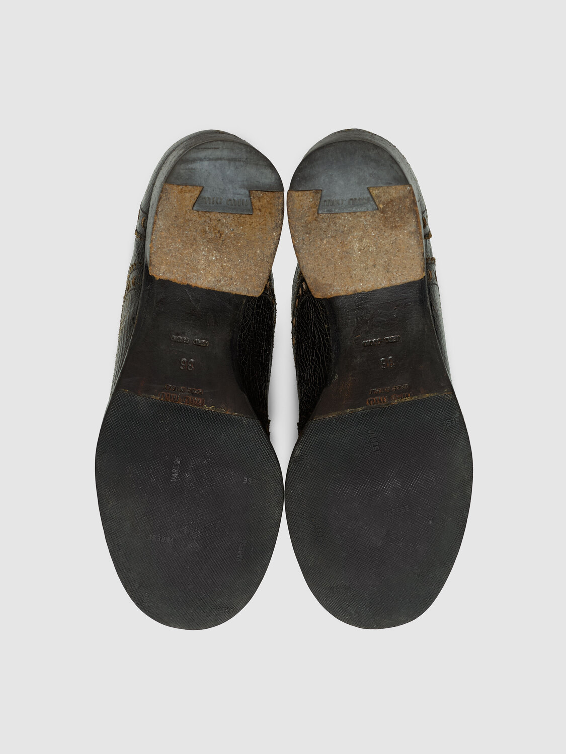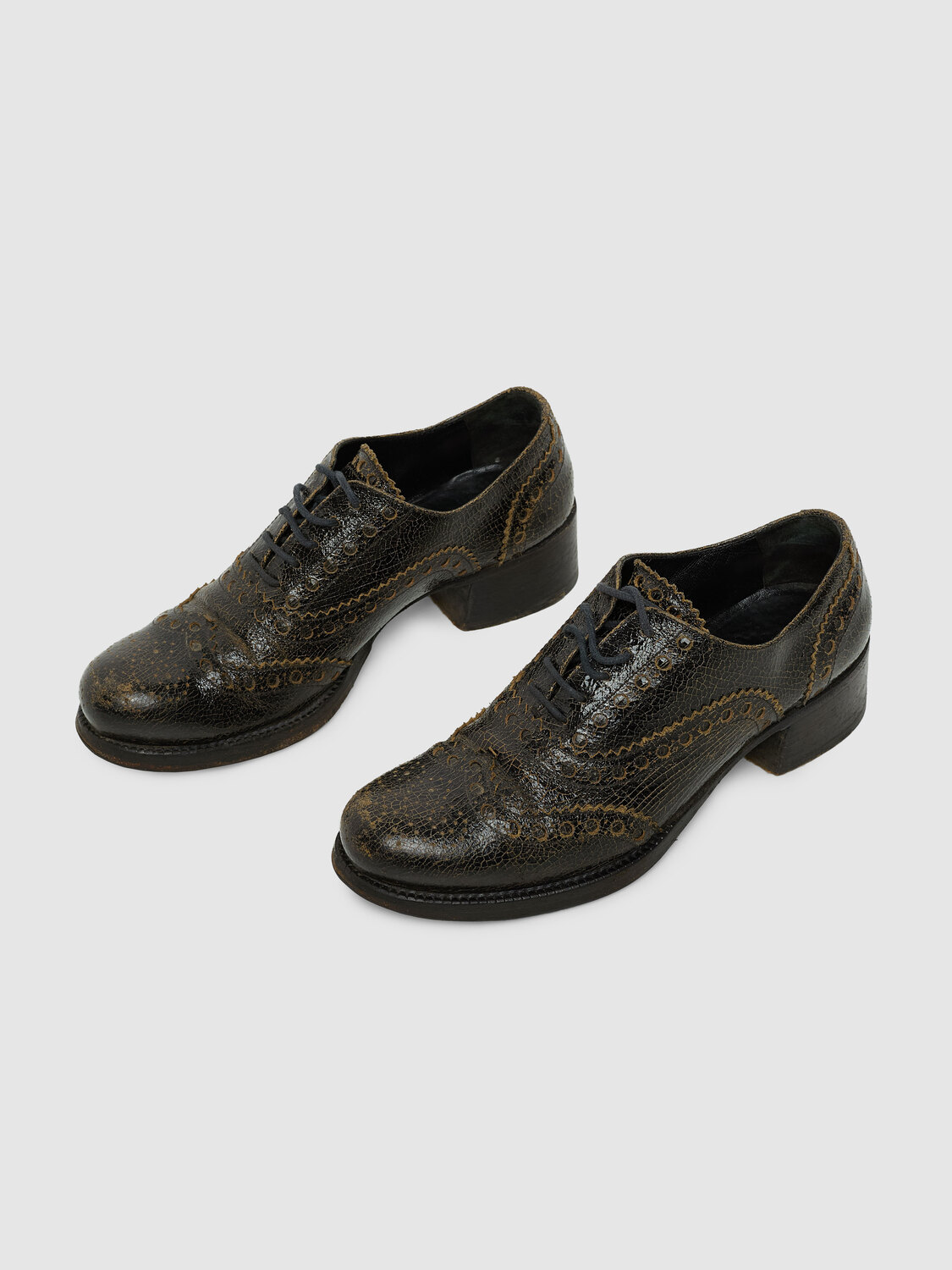 Miu Miu distressed crackled effect leather round toe heeled brogue shoes.