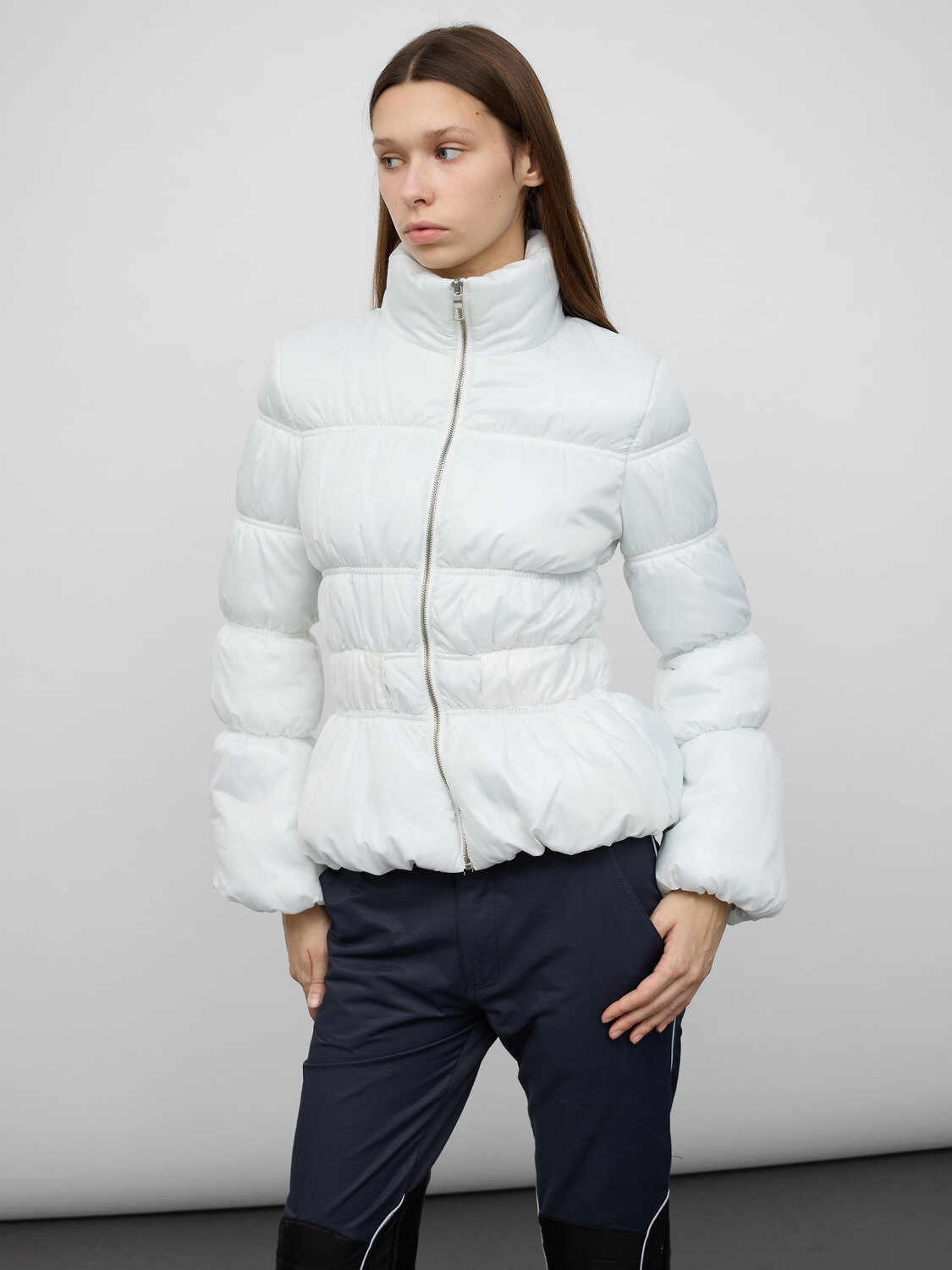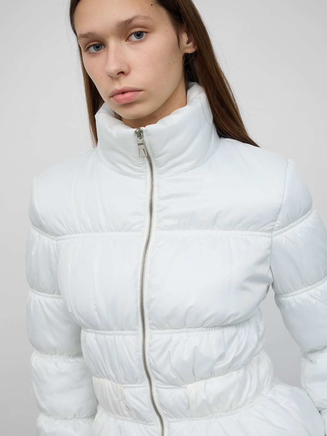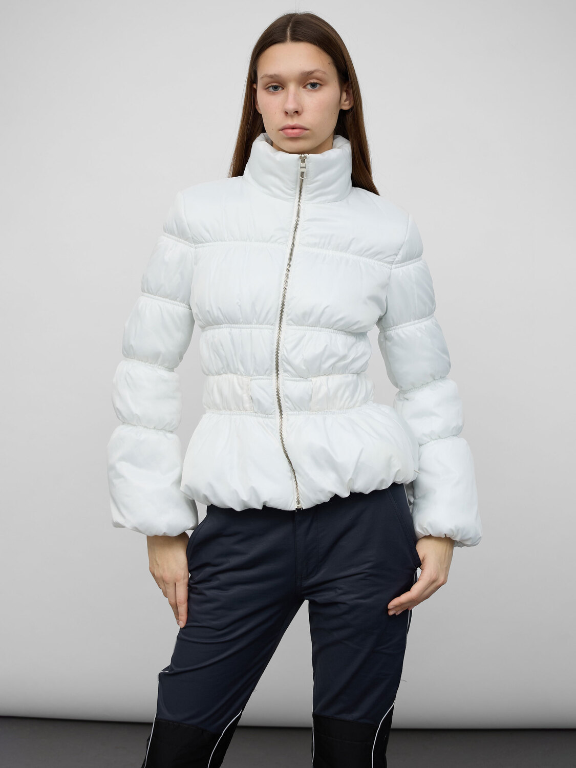 Morgan de Toi white puffer jacket with elasticated waist and cuffs, and zipper pockets.
