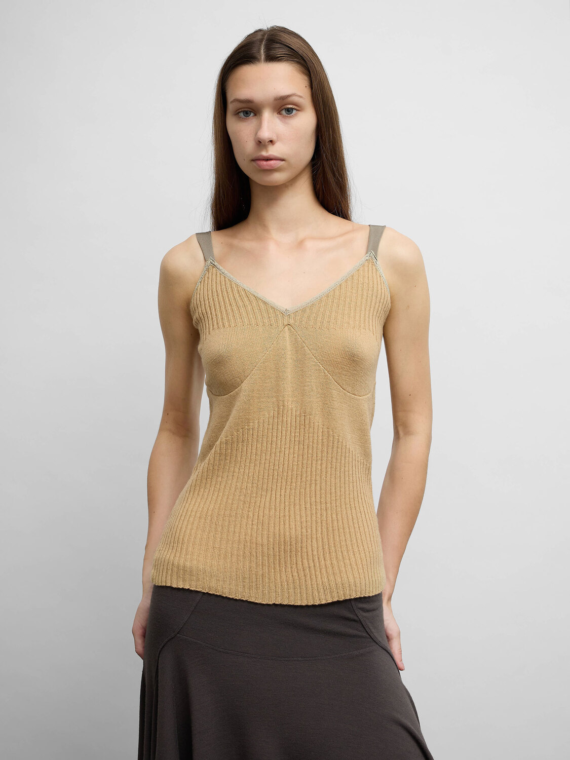 AA Milano (by Alessandro Dell'Acqua) beige fine knit merino wool camisole top.