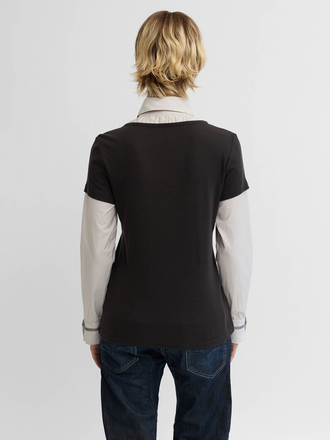 Cop Copine grey and white striped button-up shirt with an integrated rib cotton T-shirt.