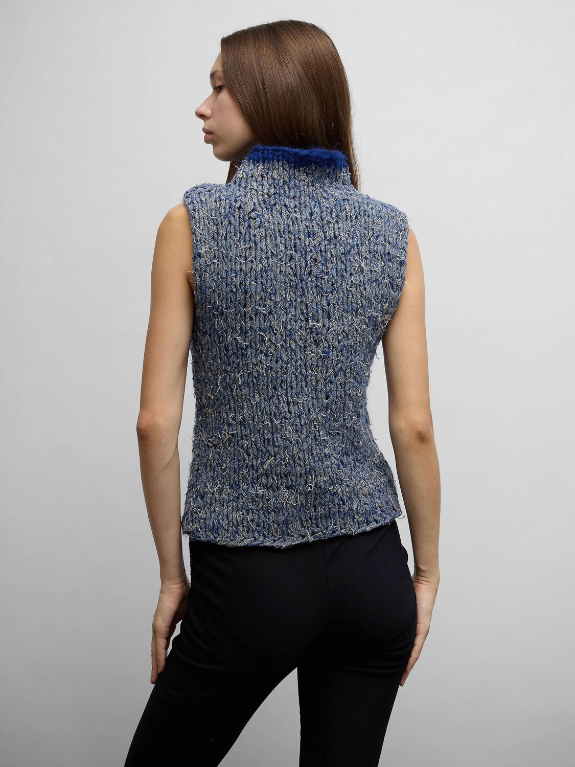 Gazebo blue-tone chunky-knit vest with a patchwork-style detail.