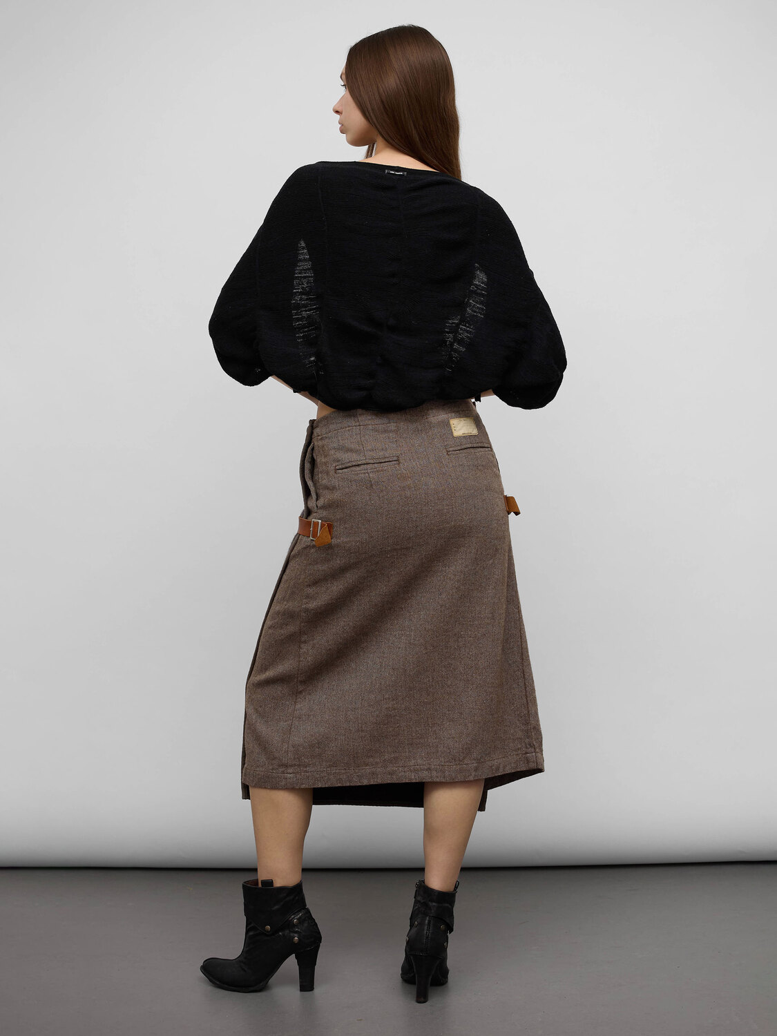 Kapital multicolour wool skirt with pockets and adjustable leather straps.