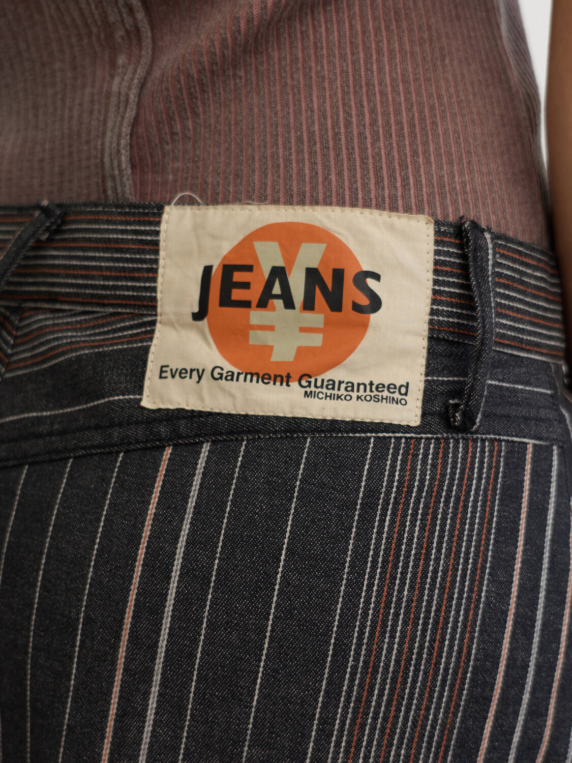 Michiko Koshino (Yen Jeans) black, white and orange striped mini skirt. Raw finish.