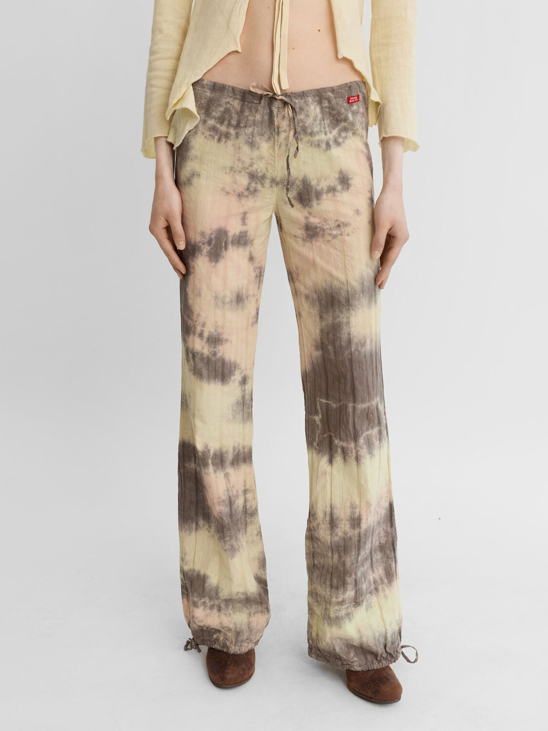 Miss Sixty multicolour tie dye low-rise light cotton trousers with ties at the waist and hems.
