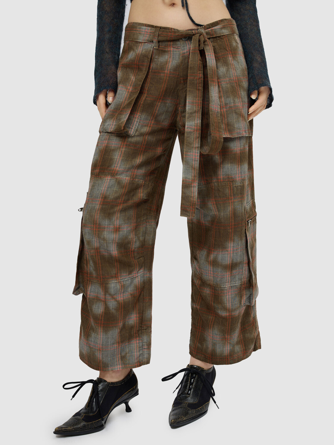 Nolita chequered ¾-length trousers with cargo pockets and gathered detail at the back. Zipper closure. Removable belt.
