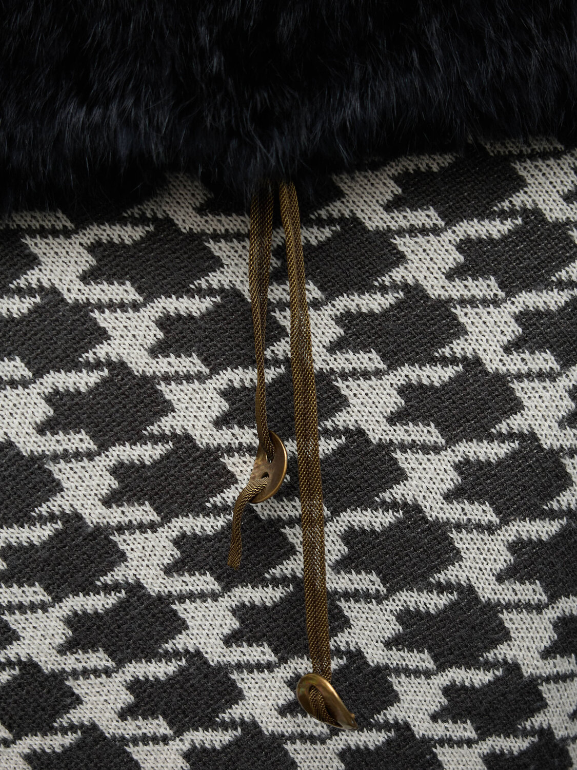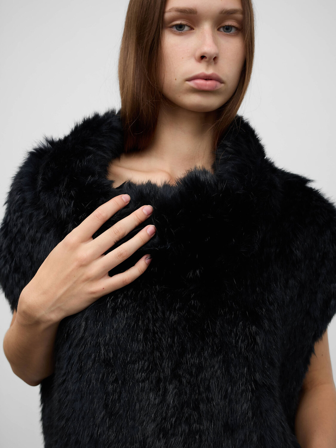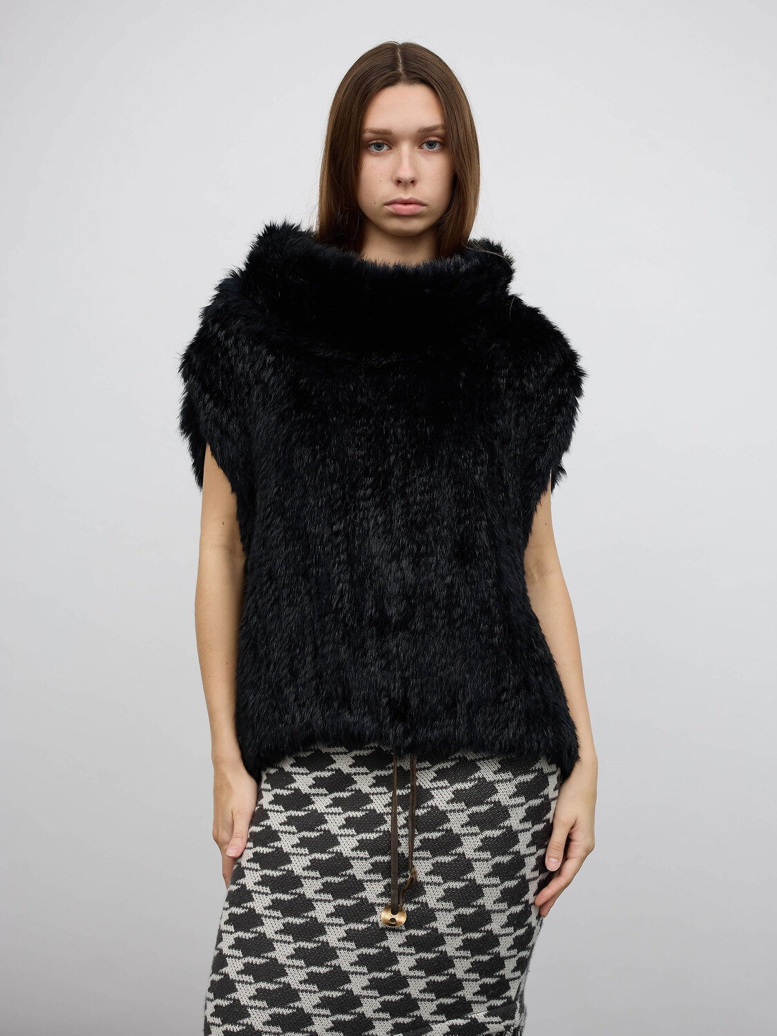 Plein Sud black fur vest with an integrated gold-tone metal belt.