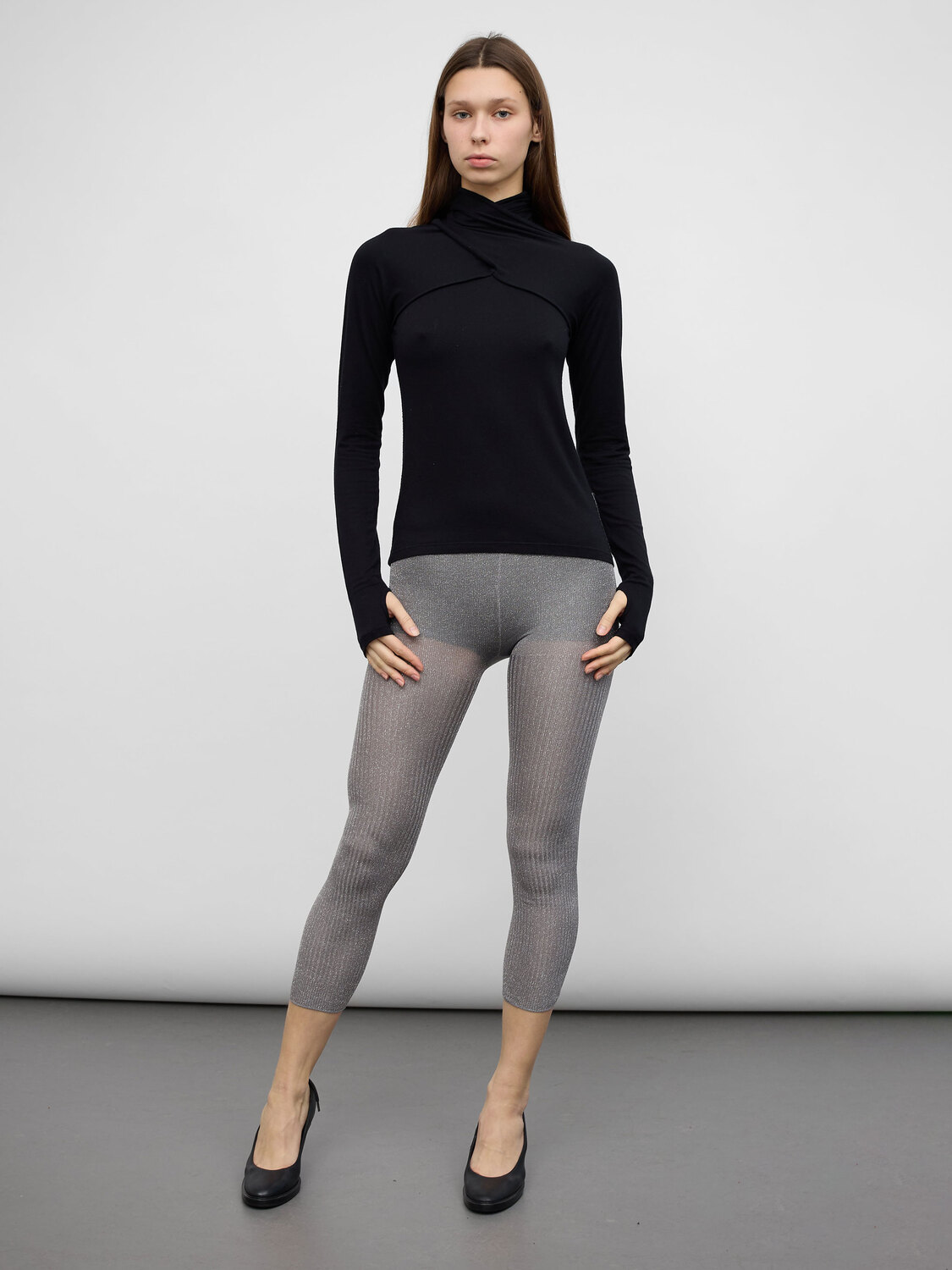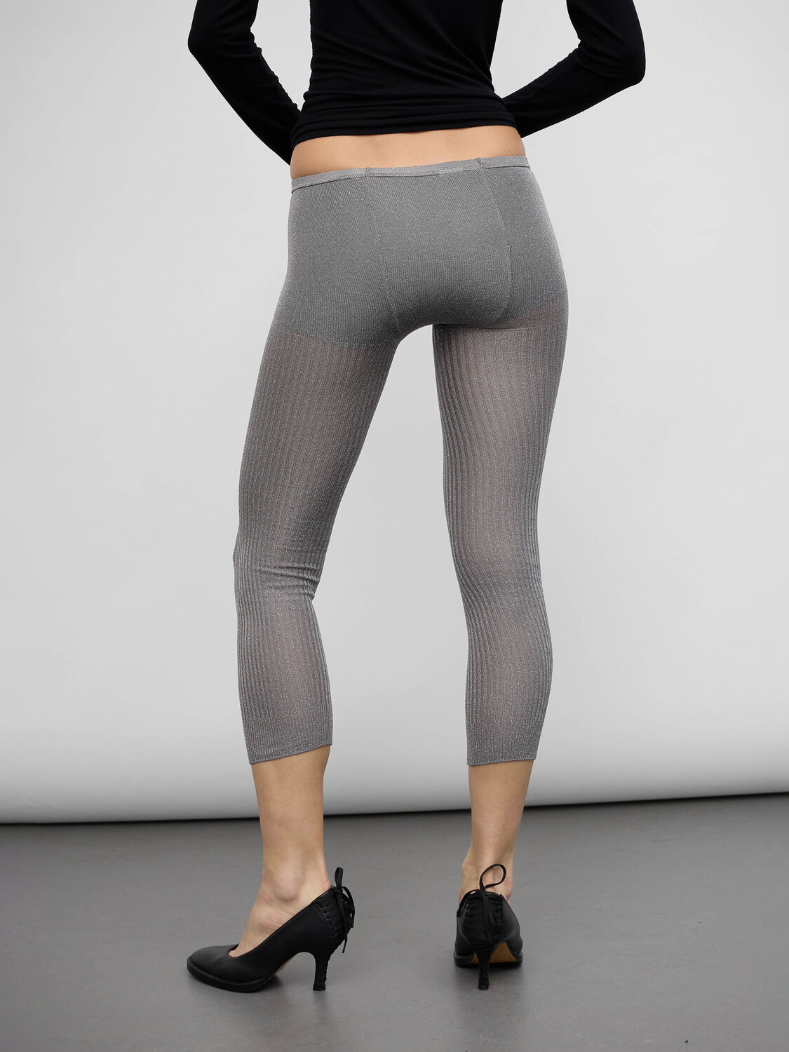 Zucca sheer silver lurex rib knit leggings with elasticated waist.